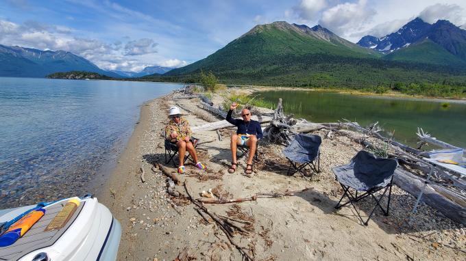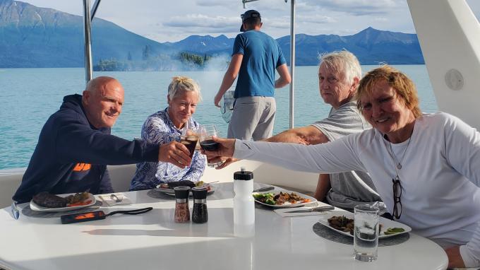 Trips focus on exploring the lake and surrounding mountains through guided hiking, waterfall visits, wildlife viewing, and quiet cruising. Guests may paddleboard up winding creeks, hike to remote waterfalls, explore shorelines by dinghy, or simply relax on deck while taking in views of glaciers, alpine peaks, and Alaska’s long summer daylight. Each itinerary is customized to match guests’ interests and activity level, with a balance of adventure and comfort.