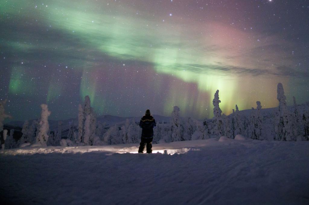 Most tours offer hotel pick-up and include transportation to top viewing destinations with clear views of the night sky away from ambient light. Local guides will be with you all evening to provide viewing tips, answer your northern lights questions, and some even capture amazing aurora portraits for you. In addition to prime aurora viewing, they take care to keep you warm and comfortable by providing hot beverages along with a place to keep warm – with some operators offering warming huts, yurts, cabins, or firepits. These aurora evening tours are ideal for those who have limited time to view the lights and want to take the guesswork about when and where to go, and those who don’t have their own transportation.